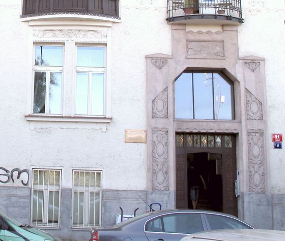 Na domě čp. 84 Janáčkovo nábřeží 9 Praha 5 Smíchov je smaltovaná deska s textem: