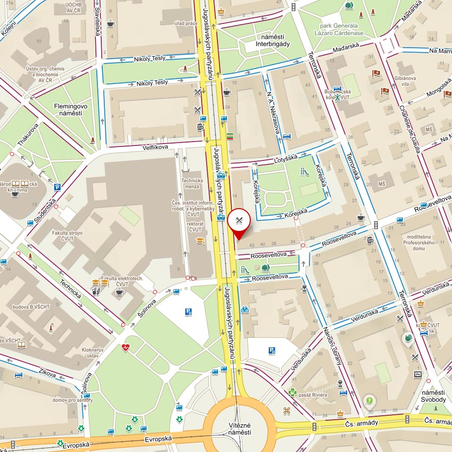 Na boční stěně domu čp. a611/8 ulice Jugoslávských partyzánů Praha 6 Bubeneč pod markýzou Pizzerie Grosseto je pod červenou uliční cedulí modrá smaltovaná dodatková cedule s textem: