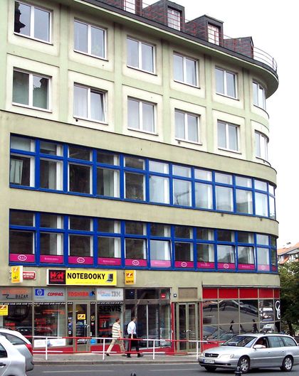 Na domě čp.808 v Mezibranské ulici 23 Praha 1 Nové Město je mramorová pamětní deska s textem: