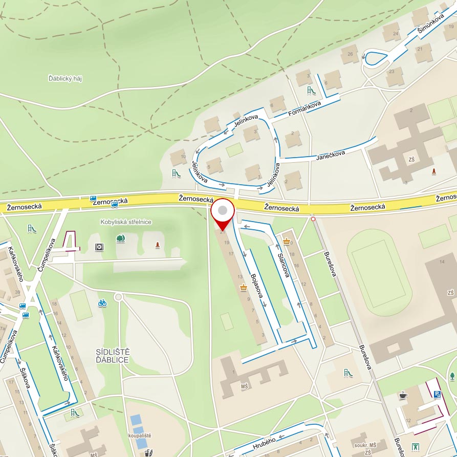 Zikova 1, Praha 6- Dejvice. Zdroj obrázku – mapy.cz